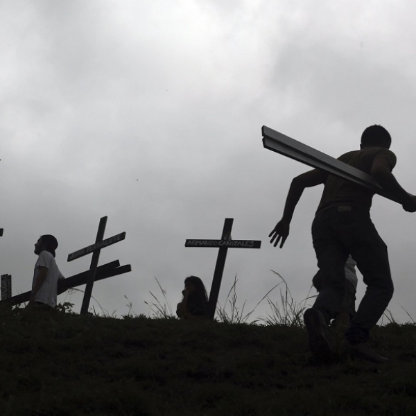 ფერნანდო ლანო - კარაკასი, ვენესუელა: პრეზიდენტ ნიკოლას მადუროს საწინააღმდეგო გამოსვლების მონაწილეები დემონსტრაციებზე მოკლული აქტივისტებისთვის ჯვრებს დგამენ.