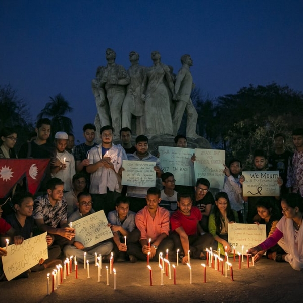ელისონ ჯოისი - დაკა, ბანგლადეში: ადამიანები პატივს მიაგებენ ავიაკატასტროფის მსხვერპლთა ხსოვნას. კომპანია US-Bangla-ს თვითმფრინავის ავარიას ნეპალში 50-მდე ადამიანის სიცოცხლე შეეწირა.