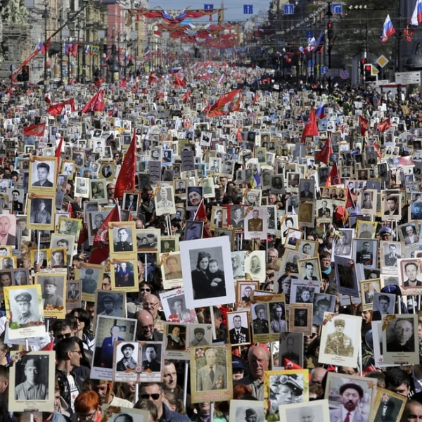 დმიტრი ლოვეცკი - სანკტ პეტერბურგი, რუსეთი: ადამიანები მეორე მსოფლიო ომის მონაწილეთა ფოტოებით ხელში 9 მაისის აღლუმზე.