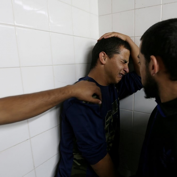 იბრაჰიმ აბუ მუსტაფა - ღაზა, პალესტინა: ისრაელის სპეცრაზმის მიერ მოკლული პალესტინელის ნათესავის რეაქცია საავადმყოფოში.