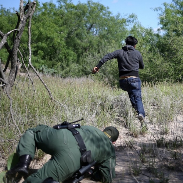 ლორენ ელიოტი - მაკალენი, ტეხასი: არალეგალური მექსიკელი მიგრანტი ამერიკელ მესაზღვრეს გაურბის.