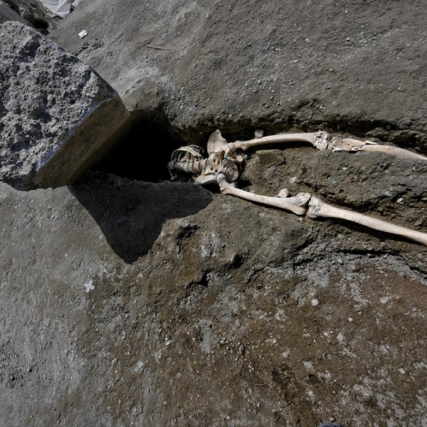 ჩირო ფუსკო - პომპეი, იტალია: ვულკანის ამოფრქვევის მსხვერპლის ახალაღმოჩენილი ჩონჩხი.