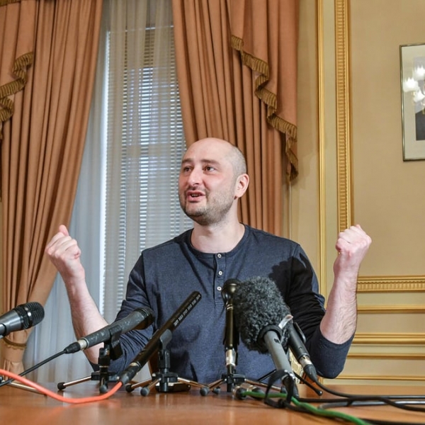 გენია სავილოვი - კიევი, უკრაინა: რუსი ჟურნალისტი არკადი ბაბჩენკო პრესკონფერენციაზე მას შემდეგ, რაც საკუთარი სიკვდილის ინსცენირება მოაწყო.