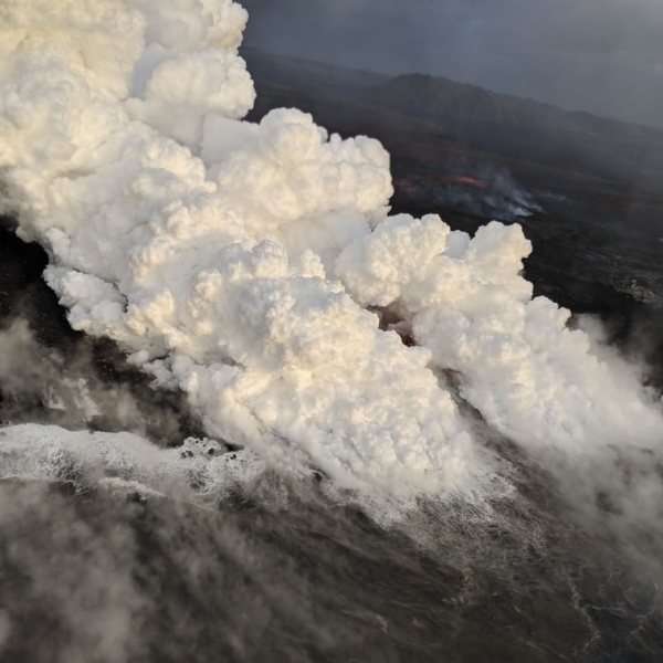 US Geological Survey - ჰავაი, აშშ: ვულკან „კილაუეადან“ ამოფრქვეული ლავა ოკეანეში ჩაედინება.