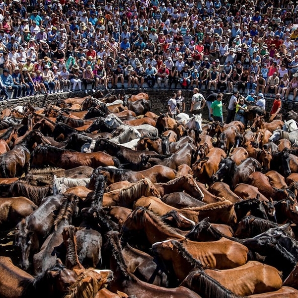 ოსკარ კორალი - საბუსედო, ესპანეთი: პონტევედრას მთიანეთში დაჭერილი გარეული ცხენები, რომლებსაც ფესტივალისას გახედნიან.
