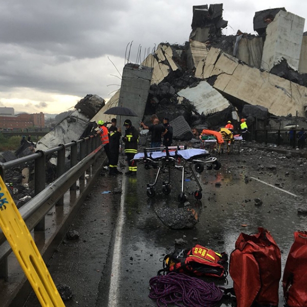 იტალიაში, ქალაქ გენუაში 50 მეტრი სიმაღლის საავტომობილო ხიდის ჩანგრევის შედეგად სულ მცირე 10 ადამიანი დაიღუპა. „ბი ბი სის“ ინფორმაციით, ხიდი მის ქვეშ გამავალ სარკინიგზო გზაზე ჩავარდა და ავტომობილები ჩაიყოლა.