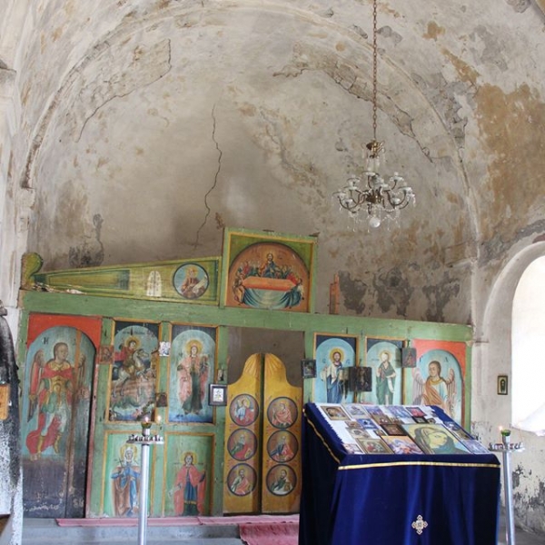ინტერიერი შელესილი იყო და შეთეთრებული. შეთეთრების ქვეშ გაირჩევა საღებავის რამდენიმე ფერი. საკურთხევლის წინ ხის კანკელია. იატაკი ქვაფენილია. ტაძარში ინახება დიდი ქვაჯვარი.
