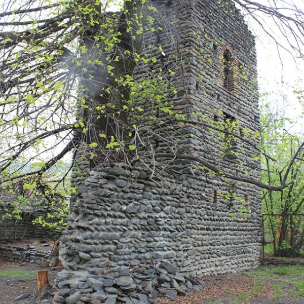 ოთხსართულიანი კოშკი ნაგებია რიყის ქვით, თაღების გამოსაყვანად კი აგურია გამოყენებული. კოშკს სამხრეთიდან ქონდა ეზო, რომელიც ასევე რიყის ქვით ნაგები გალავნით იყო შემოზღუდული. ჩვენს დრომდე გალავნის მხოლოდ აღოსავლეთის და დასავლეთის კედლების ფრაგმენტებია შემორჩენილი.