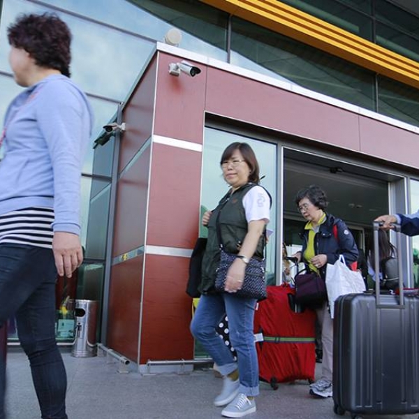 აეროპორტში კორეელი ტურისტების დახვედრის ცერემონიაში საგარეო საქმეთა მინისტრის მოადგილე გიორგი შარვაშიძე, კორეის რესპუბლიკაში საქართველოს საგანგებო და სრულუფლებიანი ელჩი ოთარ ბერძენიშვილი და ტურიზმის ეროვნული ადმინისტრაციის უფროსი გიორგი ჩოგოვაძე მონაწილეობდნენ. მათ კორეელ სტუმრებთან ერთად სამახსოვრო ფოტოები გადაიღეს და საბაჟო კონტროლის გავლისას სიმბოლური ღვინის ბოთლები გადასცეს.