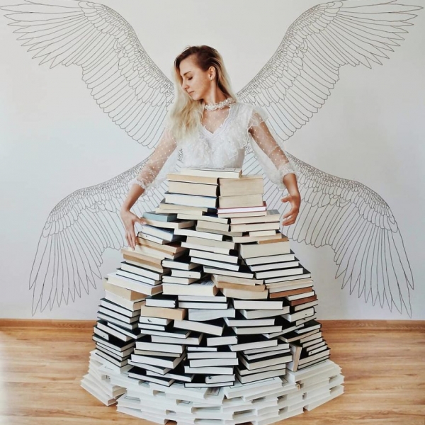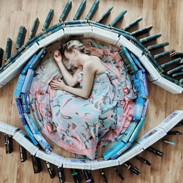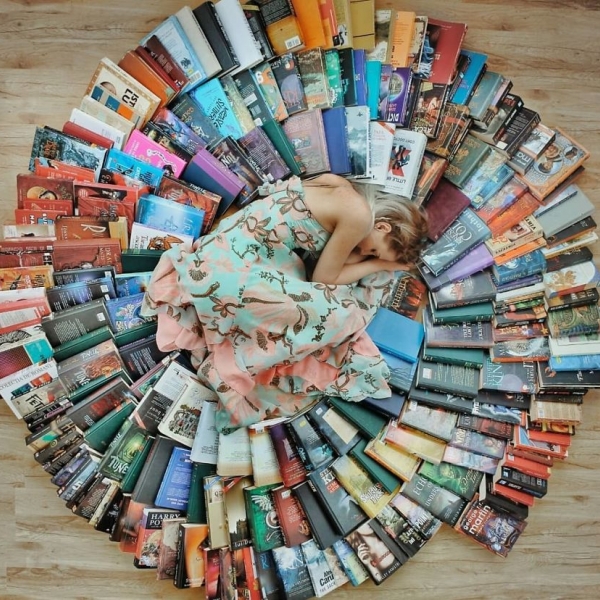 მისთვის საინტერესო და საყვარელი წიგნების გაზიარების გარდა, ელიზაბეტ საგანმა სახალისო კრეატიული ფოტოსესია მოაწყო, რაშიც საკუთარი წიგნების დიდი კოლექცია გამოიყენა.