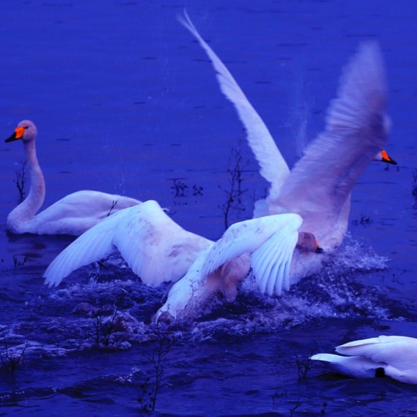 მა იუ - თეთრი გედების გუნდი სანმენსიას ტბაზე, ჰენანის პროვინცია, ჩინეთი.