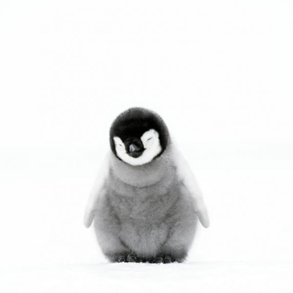 BBC - ორ ფეხზე ახლადდამდგარი ოთხი კვირის საიმპერატორო პინგვინი (Aptenodytes forsteri) ანტარქტიდის ატკას ყურეში.