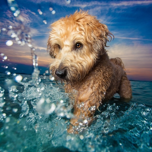 კატეგორიის „ძაღლები თამაშისას“ გამარჯვებული: კეილი გრირი - ქალაქ ბოსტონის სანაპიროსთან მოთამაშე მკვიდრი რბილბალნიანი ხორბლისფერი ტერიერი სახელად პეტი.