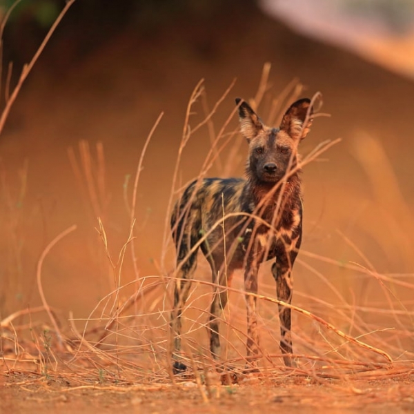ბრეტ ჩარმანი - აფრიკული აფთრისებრი ძაღლი გამთენიისას ნადირობისთვის ემზადება.