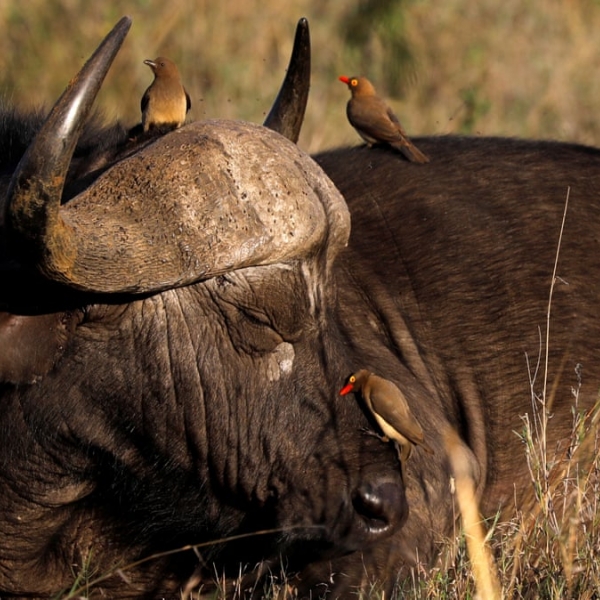Reuters - კამეჩზე მჯდომი ფრინველები ნაირობის ეროვნულ პარკში, კენია.