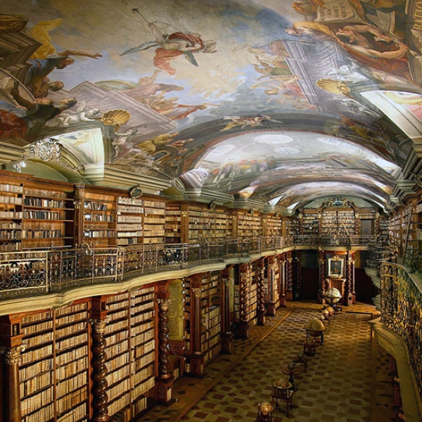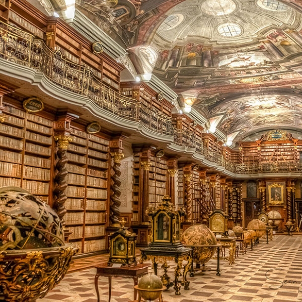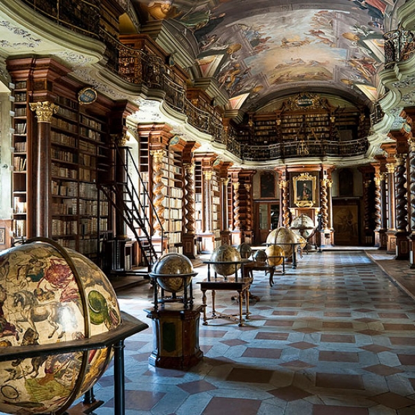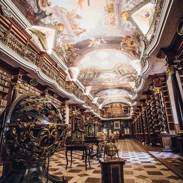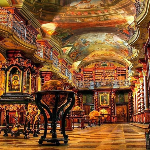 შენობის ჭერზე არსებული ფრესკები იან ჰიბლის მიერაა მოხატული. 1781 წელს უნივერსიტეტის დირექტორმა კარელ რაფაელ უნგარმა შენობა ბიბლიოთეკად გადააკეთა და ჩეხური ლიტერატურის კერად აქცია. დღემდე იქ უნიკალური ისტორიული წიგნები ინახება, რომელთა ხილვაც Google Books-ზეა შესაძლებელი.
