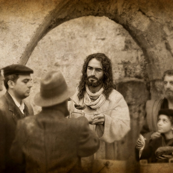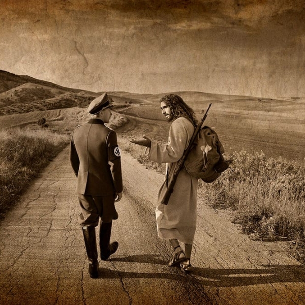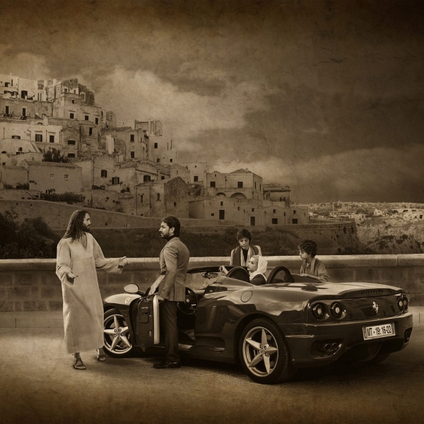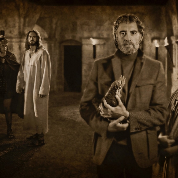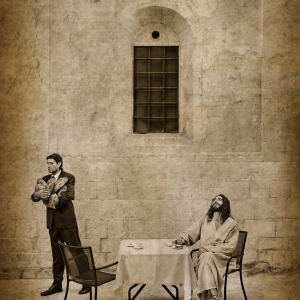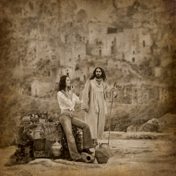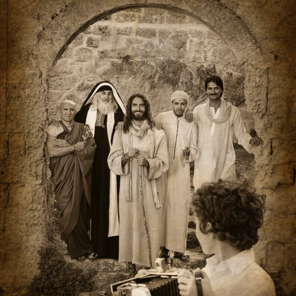 ფოტოები, რომელშიც იესო ქრისტე ახალი აღთქმის ანალოგიურ სცენებშია, სეპიას ტონალობაშია გადაღებული.