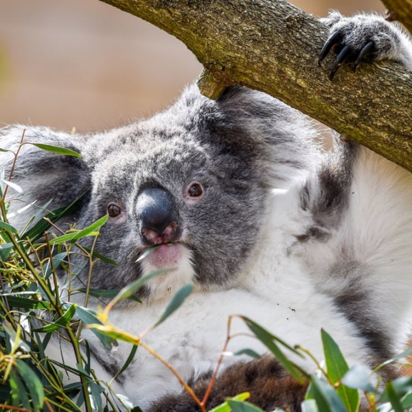 ბენ ბირჩოლი - სამხრეთული კოალა ევკალიპტის ხეზე ლონგლიტის დაცულ პარკში, უილტშირი, ინგლისი.