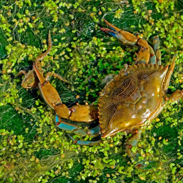 ჟან-კლოდ კარტონი - ინვაზიური სახეობა ლურჯი კიბორჩხალა ბაყაყს იჭერს ესპანეთში, მდინარე ებროს დელტაში.
