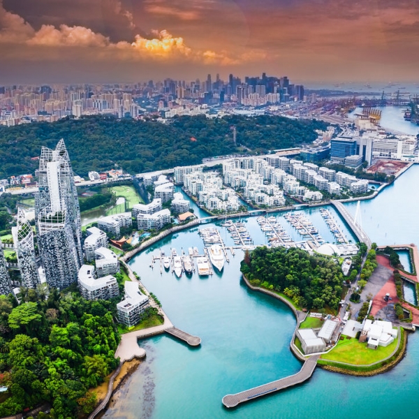 ცა, ზღვა და ულტრათანამედროვე ცათამბჯენები შთამბეჭდავ ჰორიზონტს ქმნის სამხრეთ-აღმოსავლეთ აზიის კუნძულოვან ქალაქ-სახელმწიფოში.