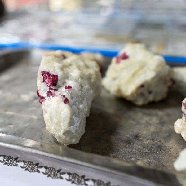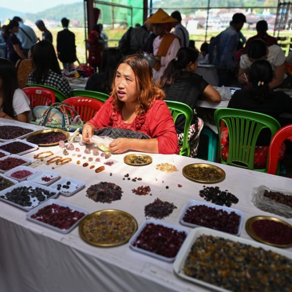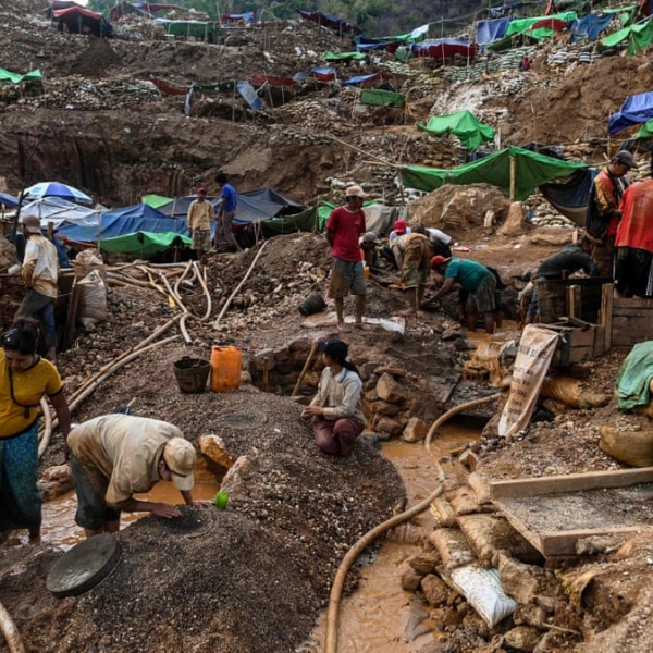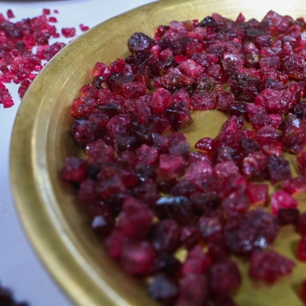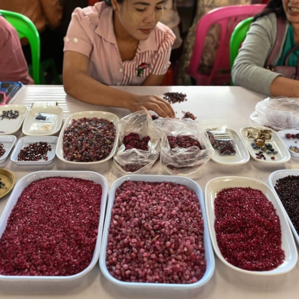 ქვეყნის ერთ-ერთი უდიდეს მაღაროს მანდალეის ჩრდილოეთით მდებარე ქალაქ მოგოკის მახლობლად არსებული მაღარო წარმოადგენს. ადგილზე მუშახელი საკუთარი ტრანსპორტით, ძირითადად მოტოსკუტერებით მიდის. შედარებით იოლ სამუშაოს იქ ქალებიც ასრულებენ. საბადოებზე ხშირია მომაკვდინებელი მეწყერები, თუმცა ეს მეშახტეებს არ აშინებთ.