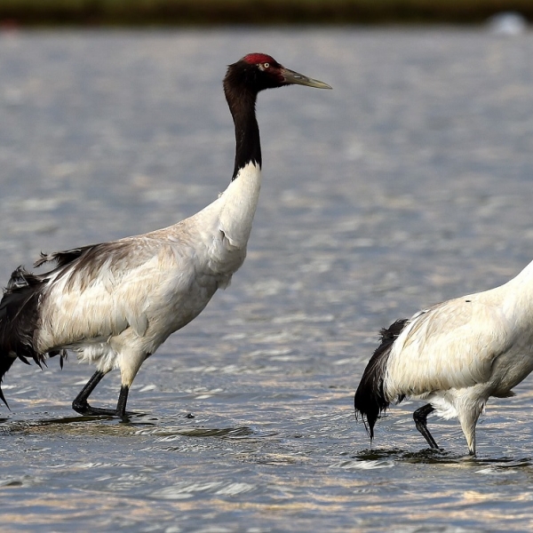 Xinhua - შავყელა წეროები (Grus nigricollis) და მათი ბარტყი ციანტანის ნაკრძალში, ტიბეტი.