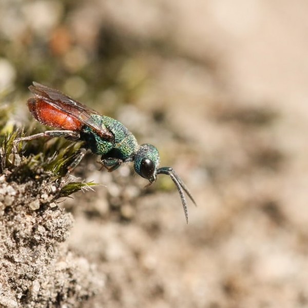 სანდრა სტენდბრიჯი - ლალისფერკუდიანი კელა (Chrysis ignita) ხავსიან ზედაპირზე, ინგლისი.