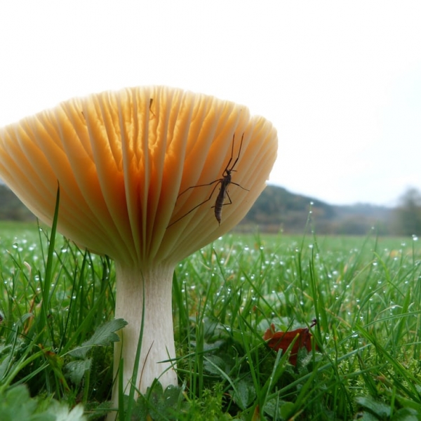 კორინ მენინგი - ცვილისთავა სოკოზე მჯდარი გრძელფეხება კოღო მისთვის საყვარელ ინგლისურ ტენიან ამინდში.