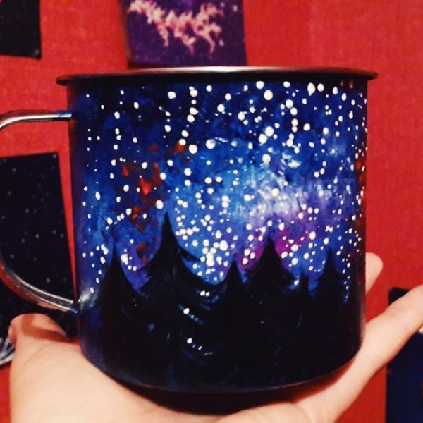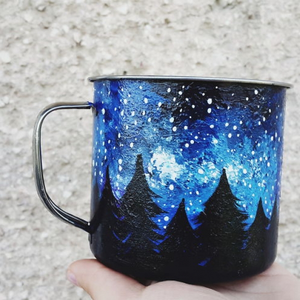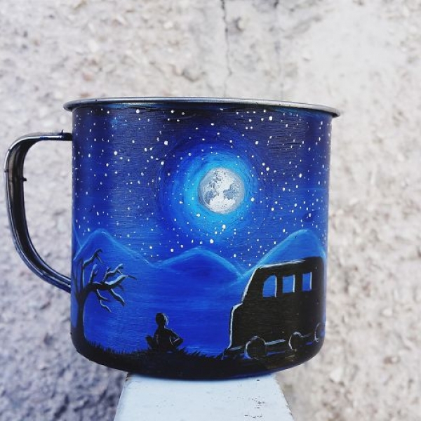 ავტორის თქმით, კრეატიული იდეა ლაშქრობიდან სახლში დაბრუნებულს გაუჩნდა, როდესაც დადებითმა ემოციებმა და შთაბეჭდილებებმა მეტალის ფინჯნის მოხატვისაკენ უბიძგა.