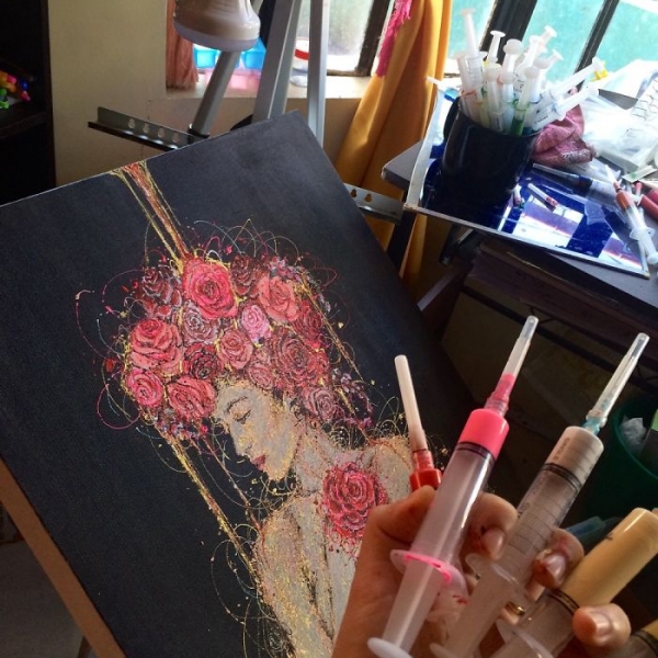 „ინექციის ხელოვნება“ - ასე უწოდა ახალგაზრდა ფილიპინელმა ექთანმა საკუთარ ნახატებს, რომლებსაც იგი ზეთის საღებავებითა და ერთჯერადი შპრიცებით ქმნის.