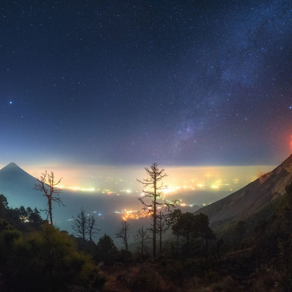 ალბერტ დოსმა მოისურვა, არამარტო ვულკანის ამოფრქვევა გადაეღო, არამედ პეიზაჟები ღამით, ირმის ნახტომის ფონზე დაეფიქსირებინა. საამისოდ იგი „ფუეგოს“ გვერდით მდებარე ვულკან აკატენანგოზე ავიდა, ღამით მოწმენდილ ცას დაელოდა და ვულკანის კრატერიდან ამოფრქვეული ლავა ვარსკვლავების ფონზე გადაიღო, შედეგი კი უდავოდ გამორჩეული გამოუვიდა.