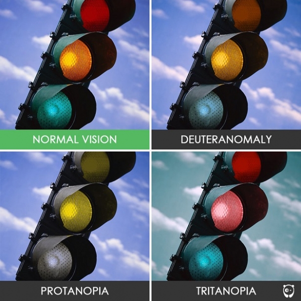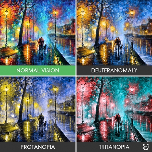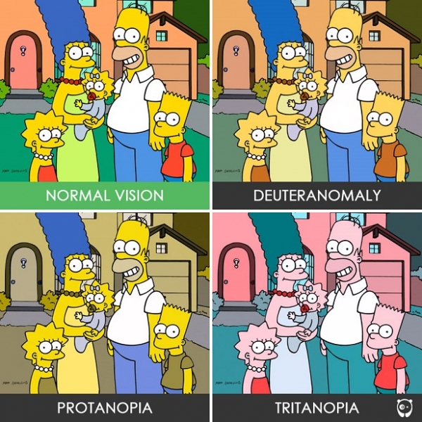 პოპულარული ვებგვერდი Bored Panda აქვეყნებს ფოტოებს, რომლებზე დალტონიზმის ხსენებული სამი ფორმაა წარმოდგენილი.