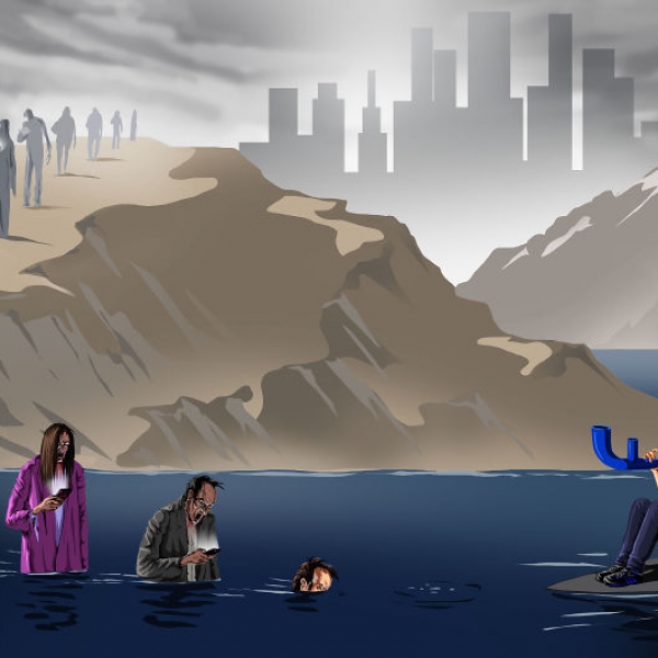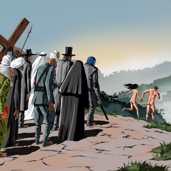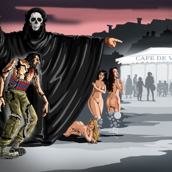 სოციალურ-პოლიტიკურ თემაზე შესრულებულ ნამუშევრებში ავტორი ისეთ პრობლემებზე ამახვილებს ყურადღებას, როგორებიცაა - სოციალურ ქსელებზე დამოკიდებულება, ტელევიზიების გავლენა საზოგადოებაზე, გარემოს დაბინძურება, რელიგიური საკითხები, ომი და სხვა.