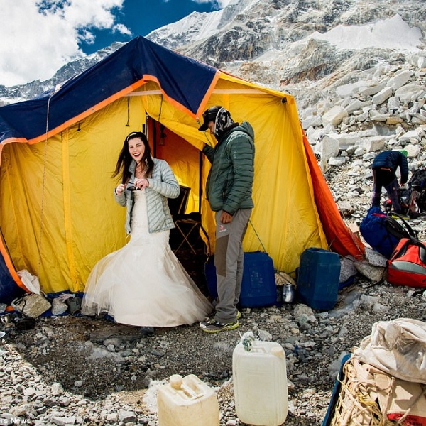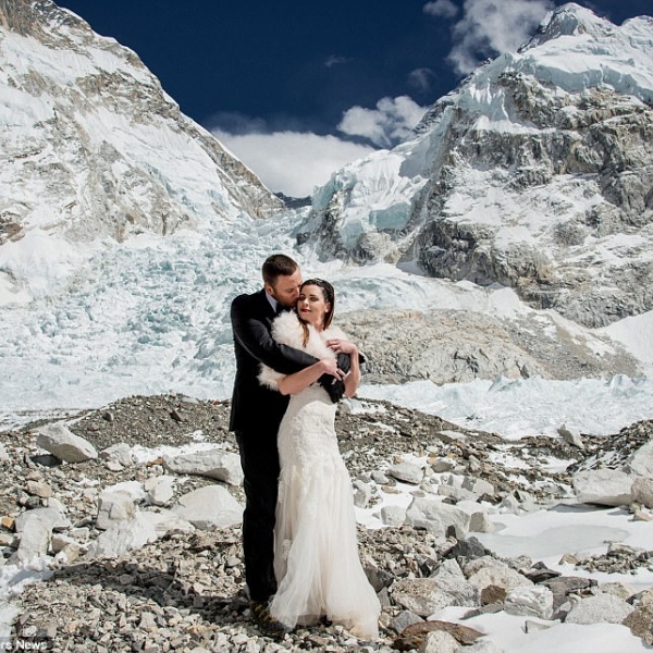 კალიფორნიელმა თამამმა წყვილმა კრეატიული და სახიფათო ქორწინების იდეის დაგეგმვას ერთი წელი მოანდომა. ნეპალში ისინი მარტში ჩავიდნენ და ევერესტზე ასასვლელად სამი კვირა დასჭირდათ, მწვერვალზე ასვლის შემდეგ კი საქორწინო სამოსი მოირგეს და შთამბეჭდავი ფოტოები გადაიღეს.