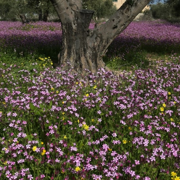 ალა ბადარნე - ზეთისხილის ხეები ყვავილებიან მდელოზე, მდინარე იორდანეს დასავლეთ სანაპიროზე მდებარე ქალაქ ჯენინში.