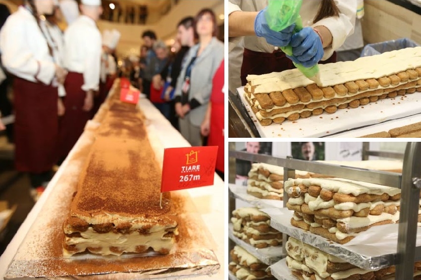 266.9 მ სიგრძის ტირამისუს დამზადებას ვილესეს კომუნაში არსებულმა სავაჭრო ცენტრმა Tiare Shopping უმასპინძლა. ყველაზე ცნობილი იტალიური დესერტის უგრძესი ვარიანტისთვის ავტორებმა 420 ლ ყავა, 400 კგ ყველი მასკარპონე, 400 კგ კრემი, 200 კგ შაქარი, 48 000 სავოიარდის ბისკვიტი, 3000 კვერცხი და 47 ლ ღვინო მარსალა გამოიყენეს. მის შექმნაში 30 კულინარი მონაწილეობდა.