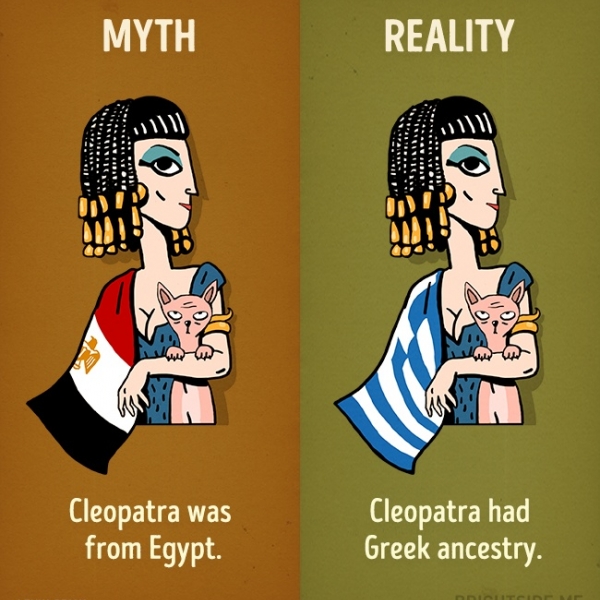 კლეოპატრა იყო ეგვიპტელი - სინამდვილეში მას ბერძნული წარმომავლობა ჰქონდა.