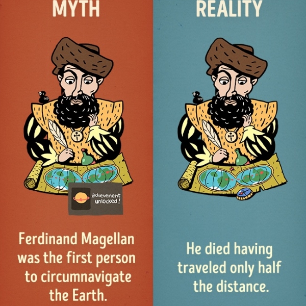 ფერნანდო მაგელანი იყო პირველი ადამიანი, რომელმაც დედამიწას შემოუარა - სინამდვილეში ის შუა მოგზაურობაში დაიღუპა.