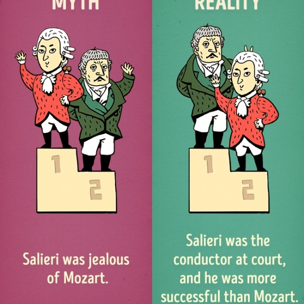 სალიერის შურდა მოცარტის - სინამდვილეში სალიერი სამეფო კარის დირიჟორი იყო და მოცარტზე ბევრად წარმატებული გახლდათ.