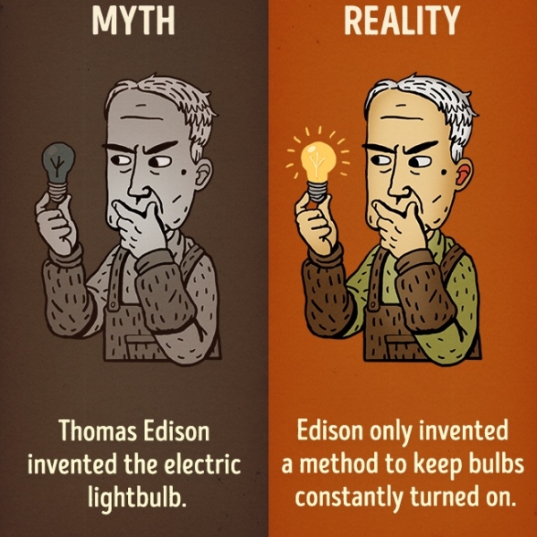 თომას ედისონმა ელექტრონათურა გამოიგონა - რეალურად ედისონმა გამოიგონა მეთოდი, როგორ ყოფილიყო ნათურა მუდმივად ანთებული.
