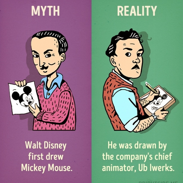 უოლტ დისნეიმ პირველად მიკი მაუსი დახატა - სინამდვილეში მიკი მაუსი კომპანიის მთავარმა ანიმატორმა უბე ივერკსმა შექმნა.