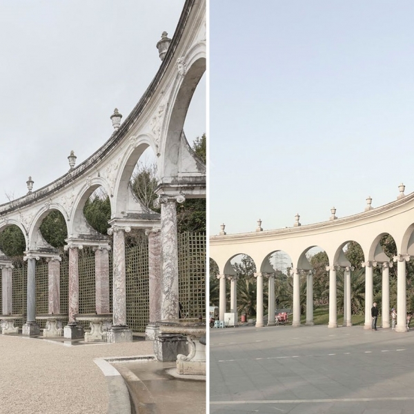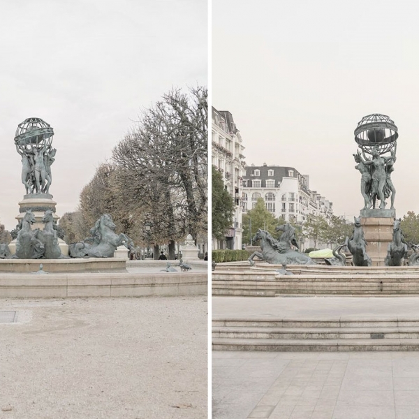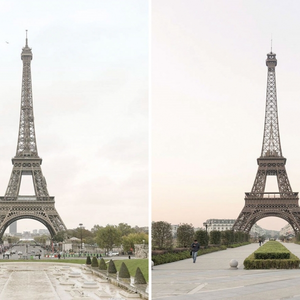 ფრანსუა პროსტის ფოტოებზე მარცხენა ნაწილში პარიზია, მარჯვნივ კი - ჩინეთის ქალაქის კადრები.