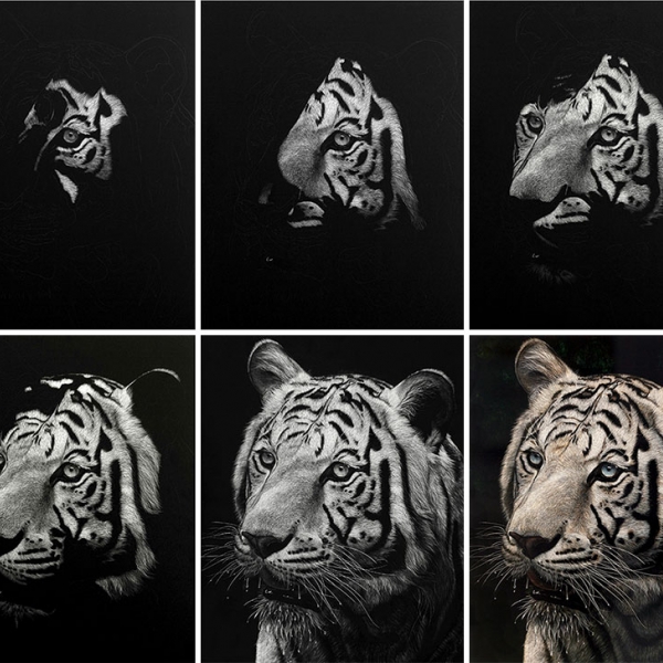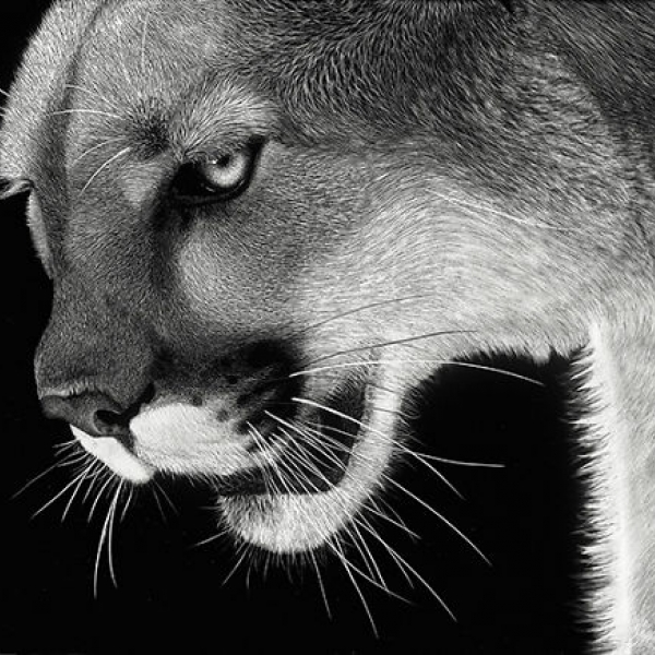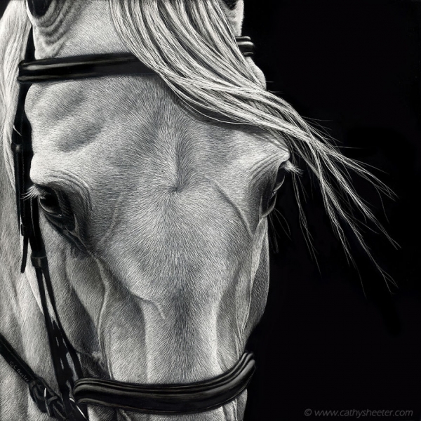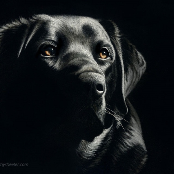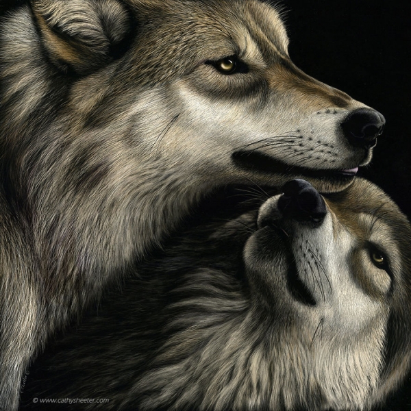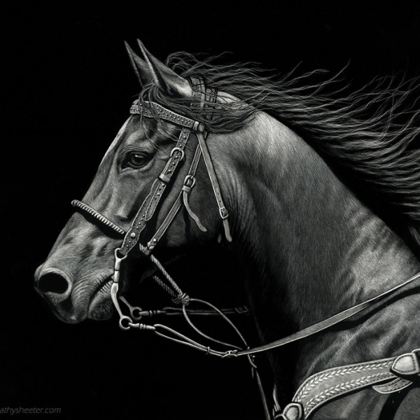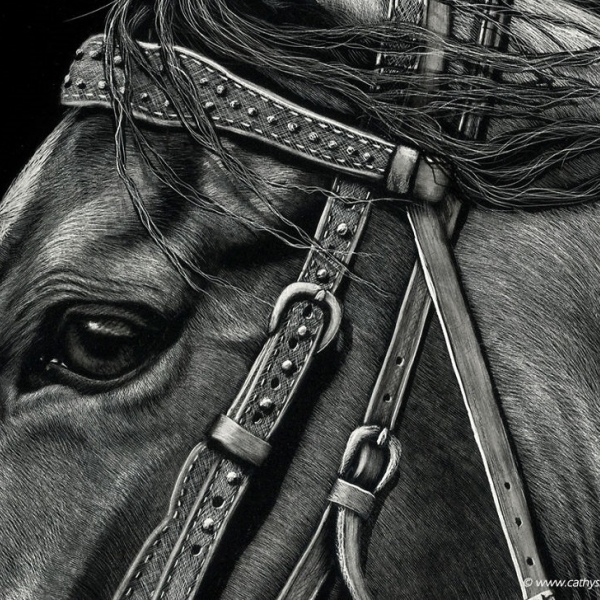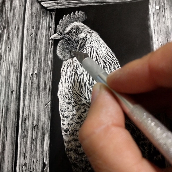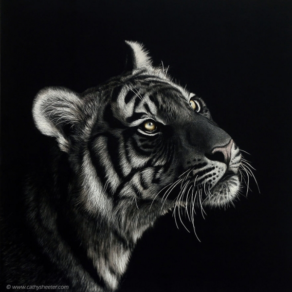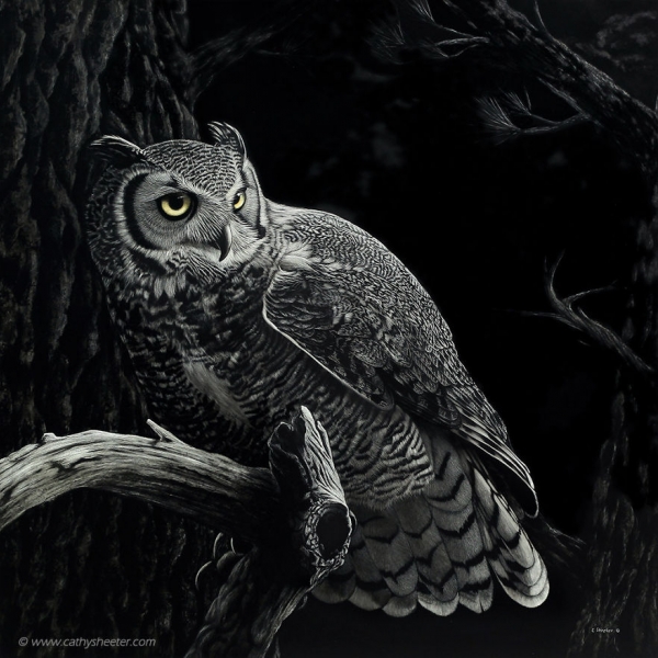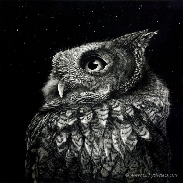 ფანქრებისა და ფუნჯების ნაცვლად კეტი შიტერის ხელოვნების იარაღს 20 წელია წამახვილებული საგანი წარმოადგენს, რომელიც შავ ფონზე გამოსახულების ხელით შექმნაში ეხმარება. 38 წლის ქალი ხელოვანი პროფესიით ბიოლოგია და მის ნამუშევრებზეც როგორც წესი ცხოველები და ფრინველები სჭარბობს.