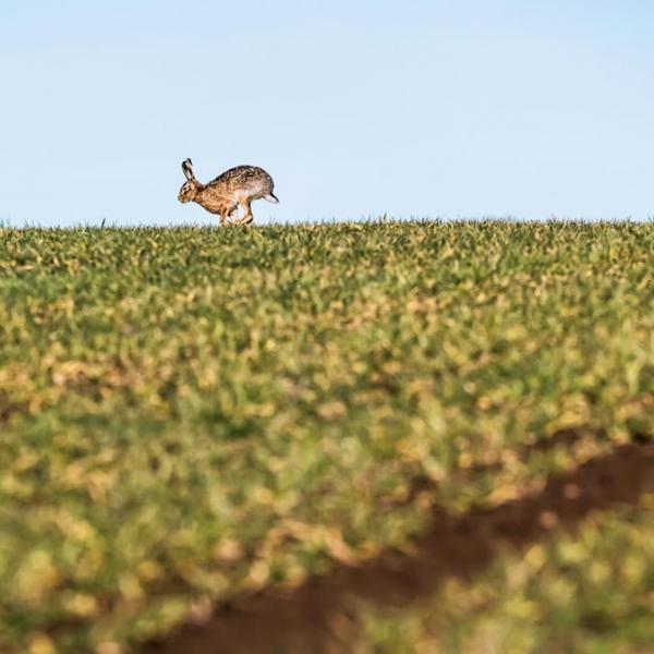 ქრის სტრიკლენდი - ევროპული რუხი კურდღელი (Lepus europaeus) ინგლის-შოტლანდიის საზღვრის მახლობლად არსებულ ფერმაში.