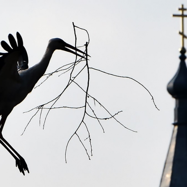 სერგეი გაპონი - ყარყატს ბუდის ასაშენებლად საჭირო ტოტი მიაქვს მინსკის მახლობლად მდებარე სოფელ კრევოში.