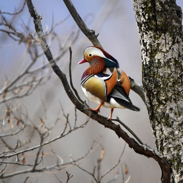 იური სმიტიუკი - ხეზე მჯდარი იხვკაზმულა იგივე იხვი-მანდარინი (Aix galericulata) ვლადივოსტოკის მახლობლად, მდინარე სოლიანაია პროტოკას ნაპირზე.