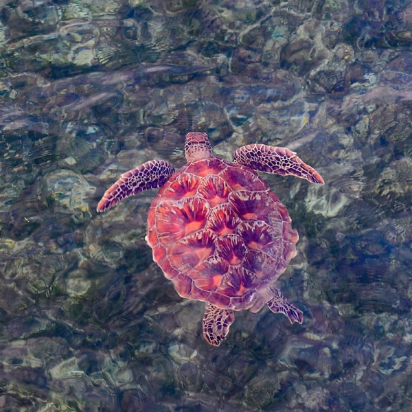 ჟენევიევ ვალე - ახალგაზრდა მდედრი ზღვის კუ (Chelonia mydas) ავსტრალიის შტატ ქვინსლენდის სანაპიროზე.