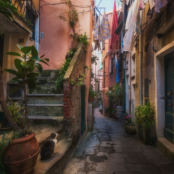 ქვეყნის ჩრდილოეთში, ლიგურიის მხარის სანაპიროს ვიწრო ქუჩებში, რომლებიც ფოტოგრაფის თქმით, ტურისტების უმრავლესოვას უყურადღებოდ რჩება, ბევრი ყვავილები და გამწვანებაა, რაც ქუჩებს კიდევ უფრო ლამაზს ხდის.
