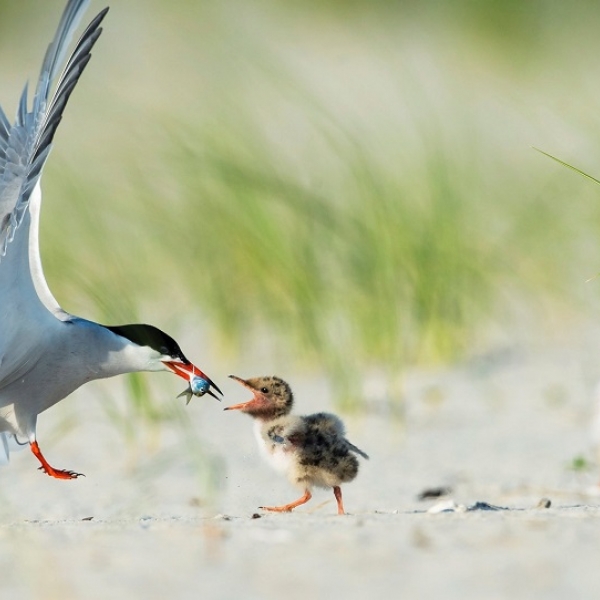 კჟიშტოფ რაბეი - მეჭვავიისებრი თოლიის ბარტყი დედისგან საკვებ თევზს იღებს ნიკერსონის სანაპიროზე, ნიუ იორკი, აშშ.