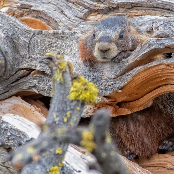 ბილ სინკავეიჯი - სოროდან გამოსული ზაზუნა გრანტ ტეტონის ეროვნულ პარკში, ვაიომინგი, აშშ.